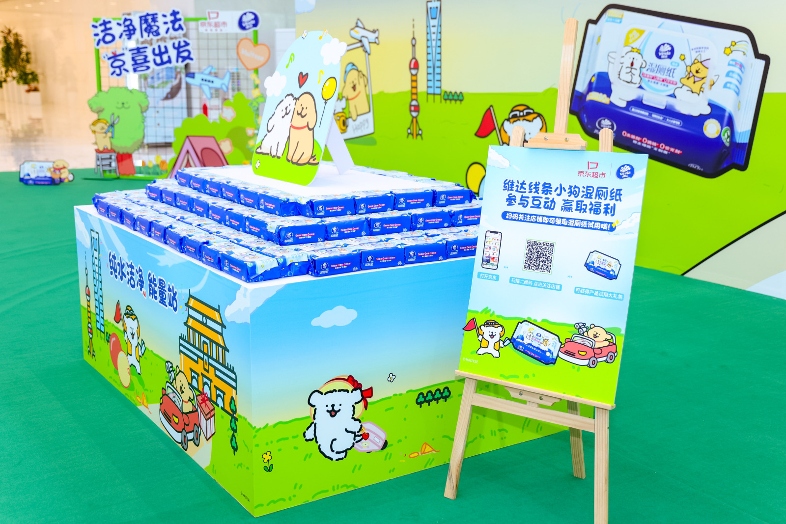 维达线条小狗湿厕巾 京东大厦快闪活动